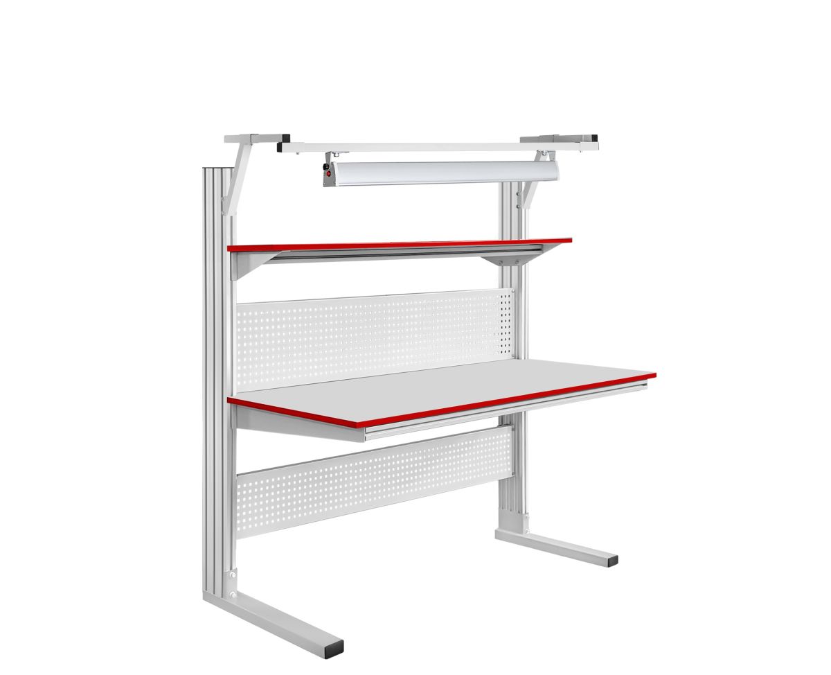Стол промышленный из конструкционного профиля СПД-КП изготовлен на базе конструкционного анодированного профиля 135х45 мм. Основным преимуществом серии столов СПД-КП является наличие пазов в конструкционном профиле, с помощью которых может быть изменена конструкция стола исходя из текущих производственных задач. Конструкция стола позволяет оснастить стол дополнительным оборудованием, а также интегрировать его с конвейерными лентами (рольгангами). В антистатическом исполнении, согласно требованиям стандарта ГОСТ IEC 61340-5-1-2019, столешница на лицевой стороне имеет маркировку — знак ESD (Electrostatic sensitive device), обозначающий работу с материалами, чувствительными к электростатическому разряду. Регулировка высоты столешницы и полки Максимальная распределенная нагрузка на стол — до 200 кг. Температурная стойкость столешницы — до 300°С. Промышленное и антистатическое исполнение ESD.