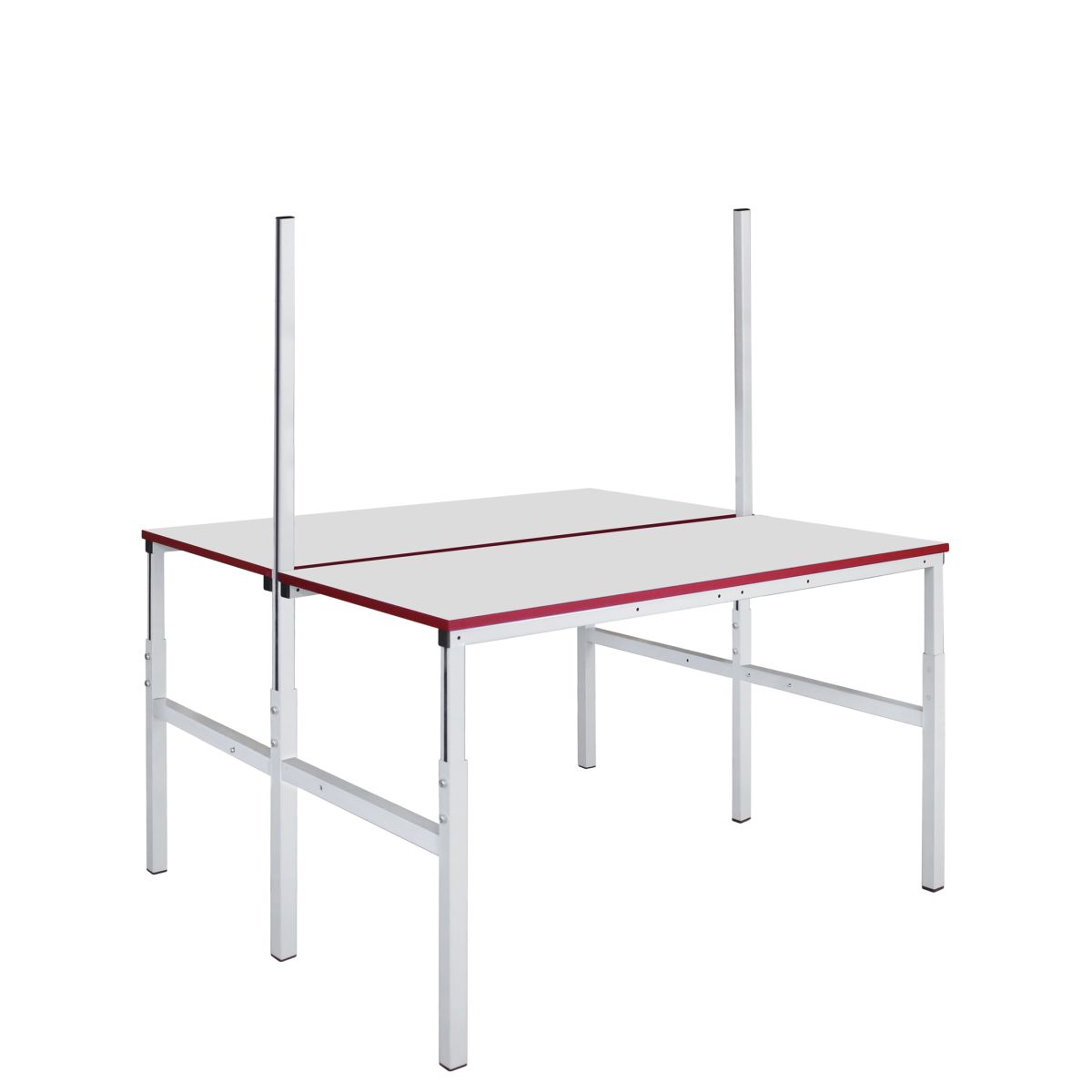 Стол антистатический, согласно требованиям стандарта ГОСТ IEC 61340-5-1-2019, на лицевой стороне обеих столешниц имеет маркировку — знак ESD (Electrostatic sensitive device), обозначающий работу с материалами, чувствительными к электростатическому разряду. Основу столешницы составляет плита, облицованная HPL ESD пластиком. В комплект поставки антистатического стола входит ESD набор для заземления столешниц — болт и провод с клеммой.